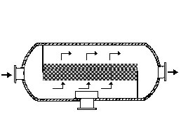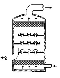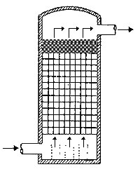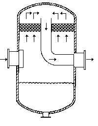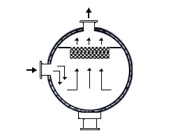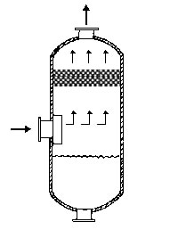 在通常的化工操作中所碰到的氣體中分散液滴的直徑約在0.1~5000μm。一般粒徑在100μm以上的顆粒因沉降速度較快,其分離問題很容易解決。通常直徑大于50μm的液滴,可用重力沉降法分離;5μm以上的液滴可用慣性碰撞及離心分離法;對(duì)于更小的細(xì)霧則要設(shè)法使其聚集形成較大顆粒,或用纖維過濾器及靜電除霧器。絲網(wǎng)除沫器,其主要用于分離直徑大于3μm~5μm的液滴,工作原理如右圖所示。當(dāng)帶有霧沫的氣體以一定的速度上升,通過架在格柵上的金屬絲網(wǎng)時(shí),由于霧沫上升的慣性作用,使得霧沫與細(xì)絲碰撞而粘附在細(xì)絲的表面上。細(xì)絲表面上的霧沫進(jìn)一步擴(kuò)散及霧沫本身的重力沉降,使霧沫形成較大的液滴沿著細(xì)絲流至它的交織處。由于細(xì)絲的可濕性、液體的表面張力及細(xì)絲的毛細(xì)管作用,使得液滴越來(lái)越大,直至其自身的重力超過氣體上升的浮力和液體表面張力的合力時(shí),就被分離而下落,流至容器的下游設(shè)備中。只要操作氣速等條件選擇得當(dāng),氣體通過絲網(wǎng)除沫器后,其除沫效率可達(dá)到97%以上,可以達(dá)到完全去除霧沫的目的。絲網(wǎng)除沫器(除霧器)用于分離塔中氣體夾帶的液滴,以保證有傳質(zhì)效率,降低有價(jià)值的物料損失和改善塔后壓縮機(jī)的操作,一般多在塔頂設(shè)置絲網(wǎng)除沫器?捎行コ3--5um的霧滴,塔盤間若設(shè)置除沫器,不僅可保證塔盤的傳質(zhì)效率,還可以減小板間距。所以絲網(wǎng)除沫器主要用于氣液分離。亦可為空氣過濾器用于氣體分離。此外,除沫器絲網(wǎng)還可作為儀表工業(yè)中各類儀表的緩沖器,以防止電波干擾的電子屏蔽器等。在化工工藝過程中,各種氣液相接觸設(shè)備的氣體離開設(shè)備時(shí)往往夾帶著不少液滴,如塔類設(shè)備、蒸發(fā)器等。一般要求把氣體中夾帶的液滴分離出來(lái),以免影響氣體的品質(zhì)或下道工序的操作。從氣體分離液滴或霧沫的機(jī)理有重力下降、慣性碰撞、離心分離、布朗運(yùn)動(dòng)的擴(kuò)散沉積和靜電吸引。絲網(wǎng)除沫器是屬于慣性碰撞除沫中的典型產(chǎn)品,是一種高效的氣液分離設(shè)備。它具有除沫效率高、結(jié)構(gòu)簡(jiǎn)單、空隙率大、壓力降小、重量輕,安裝、操作、維修方便等特點(diǎn)。當(dāng)氣體自下而上通過絲網(wǎng)除沫器時(shí),由于慣性作用與絲網(wǎng)表面碰撞,霧沫隨即在細(xì)絲表面聚集而擴(kuò)張,不斷變大的液滴由于重量產(chǎn)生的重力超過氣速和液體表面的張力的合力時(shí),液滴就下落。工業(yè)上常用于塔器、蒸發(fā)器和分離器等。